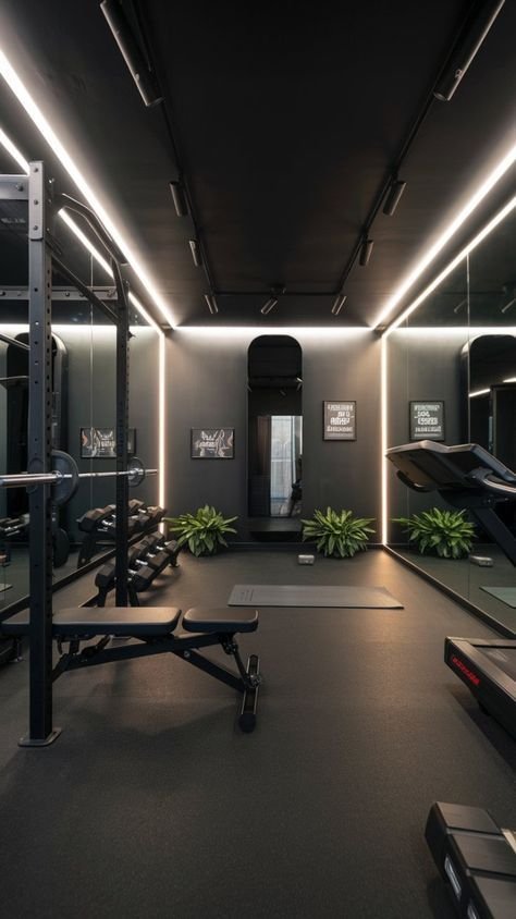 Imágenes modernas y minimalistas de equipos para gimnasio en casa.
